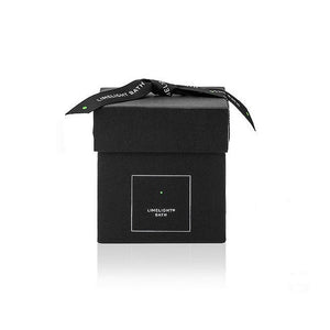 This candle comes with a silver lid, wrapped in black tissue and beautifully boxed in a black box with black grosgrain ribbon.