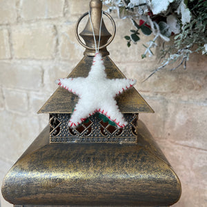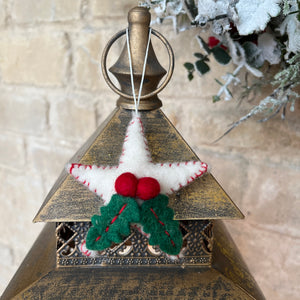 Beautifully hand crafted felted wool Star, with hand stitched embroidery and applied Holly and Berries details.