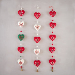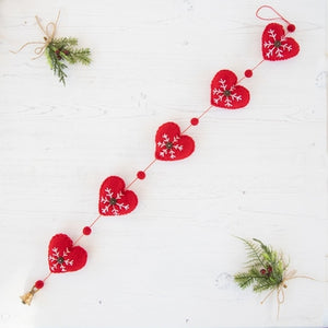 Pure Felted Wool Embroidered 'Heart' Garland - Red