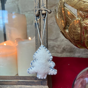 Each decoration is hand crafted, hand embroidered and the look is completed with a decorative button.