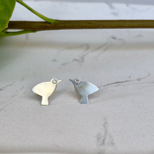 Cute 'Bird' earrings, hand crafted in silver by female artisans through Lily's Leaves.