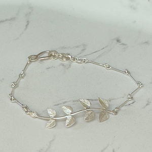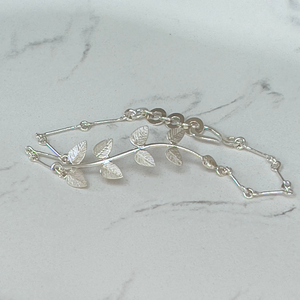 Delicate, textured 'Leaf' bracelet hand crafted in silver by female artisans through Lily's Leaves.