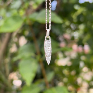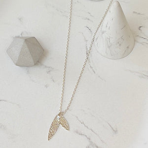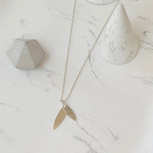 Reversible double leaves silver necklace with silver chain. A beautiful stylish piece, hand crafted by female artisans through Lily's Leaves. Wear with the plain or tempered side up on depending on your mood or outfit. Classically understated and stylish.