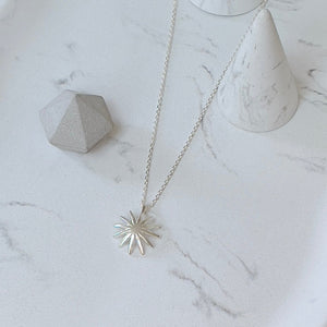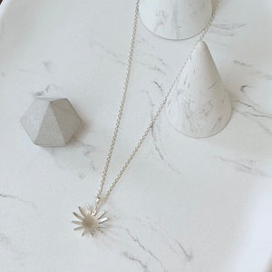 The Sun & the Stars reversible silver necklace with silver chain. Wear with either the plain side up or the detailed depending on your mood and outfit. A beautiful piece, hand crafted by female artisans through Lily's Leaves.