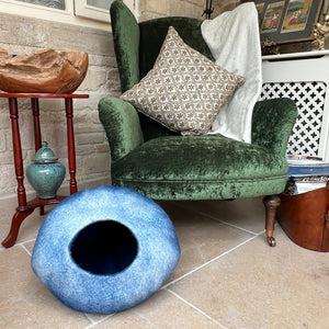 This delightful handcrafted wool cave is pure bliss wrapped in blue. Made from 100% New Zealand felted wool and coloured with natural dyes, it's soft, warm, and totally chemical-free—just the way your furry friend likes it.