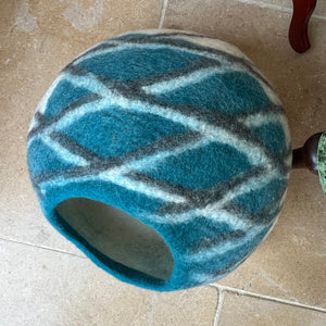 Handcrafted Pure Wool Felted Pet Cave - Sea Green