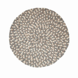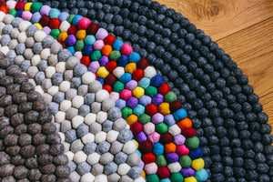 Our rugs are made for us by one of the family businesses we have worked with for many years. It takes a long time to learn the craft of felt ball making; dying the wool, sizing each ball by pulling tufts of wool by hand and then rolling to create each perfectly shaped and sized ball. They are then hand sewn to create beautiful rugs.
