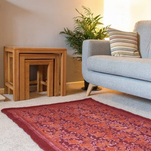 The Handcrafted Felted Wool Floral Floor Rug in Burgundy is a stunning addition to any interior, blending artistry with practicality. Meticulously crafted by the same family artisans behind our Felted Ball Rugs, this piece offers vibrant colour and a sense of warmth to enrich your living space. Made from pure new wool, the rug is naturally dirt-repellent, highly durable, and designed to withstand daily use.