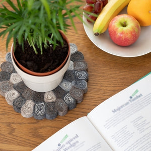 This handcrafted felted wool trivet combines a warm colour design with durable, sustainable materials.